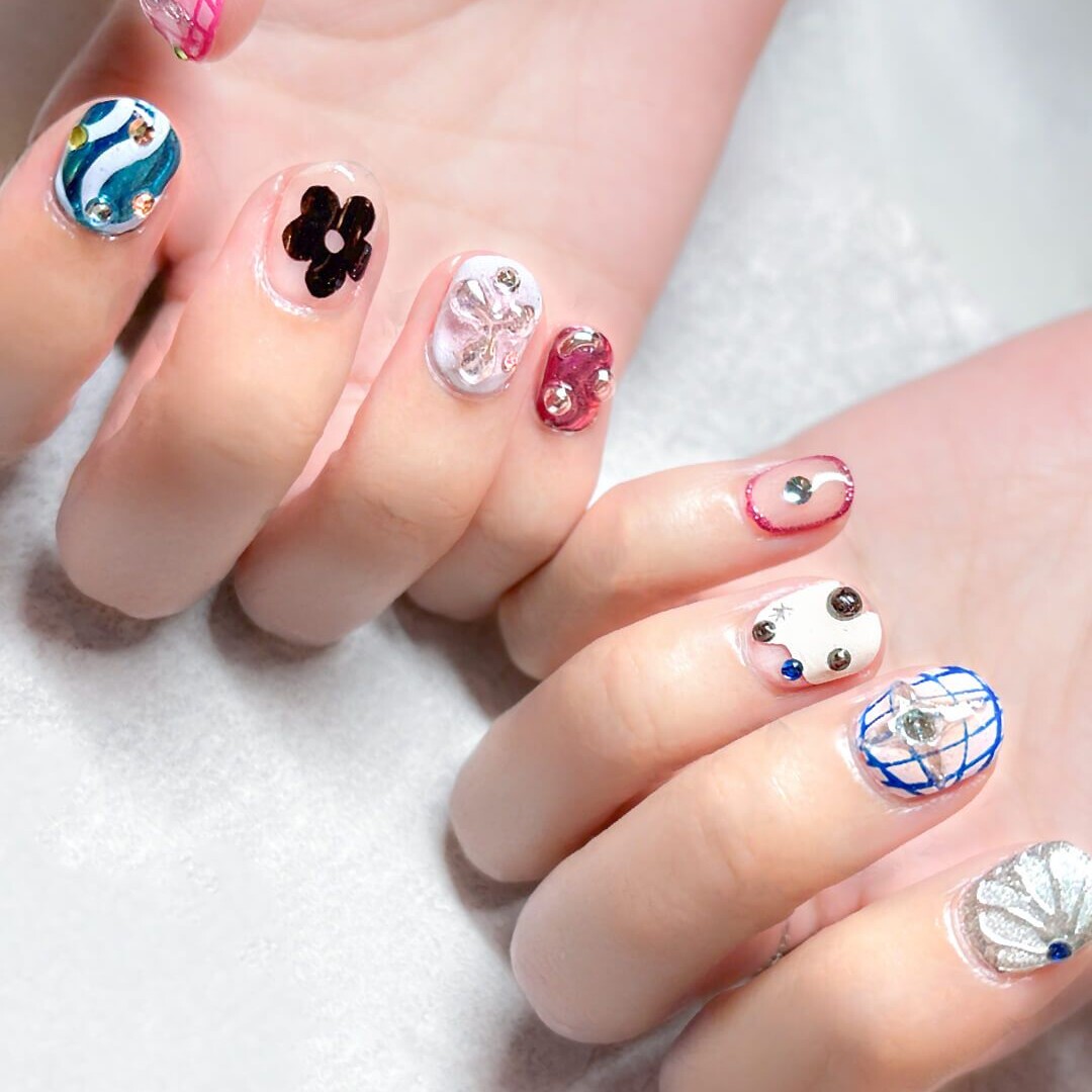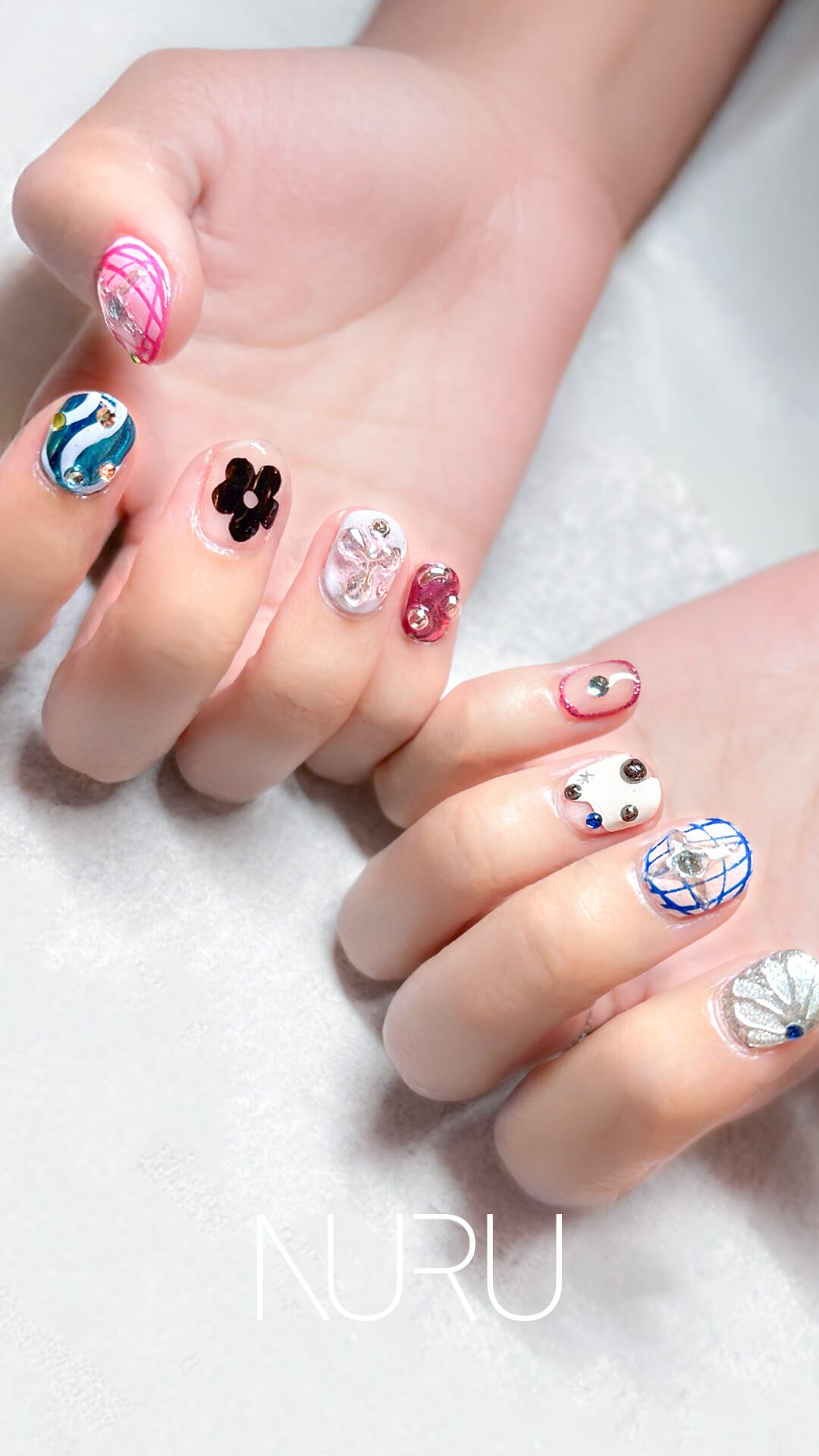 新宿ネイルサロン, 手描きアート, NURU, YUMIネイル, 個性派ネイル, やり放題, カラフルネイル
