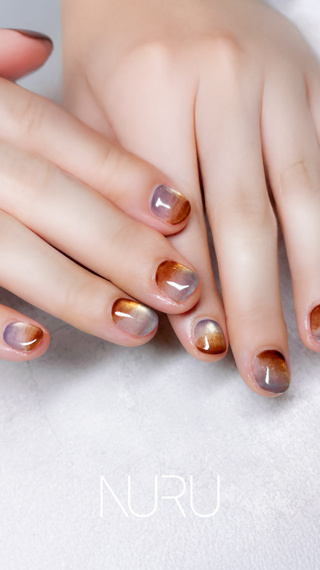 新宿ネイルサロン, ニュアンスネイル, グラデーション, NURU, YUMIデザイン, 秋ネイル, ショートネイル